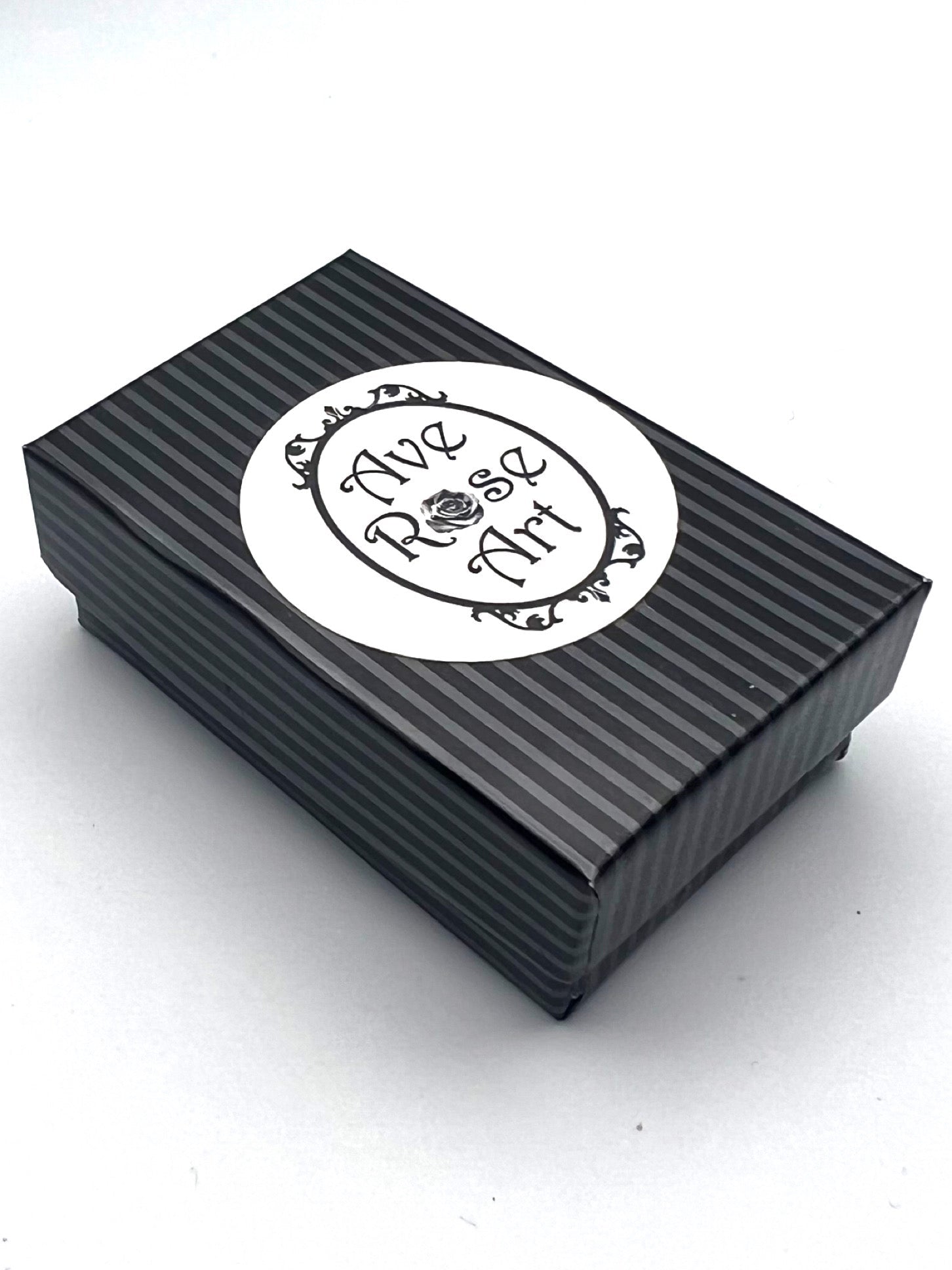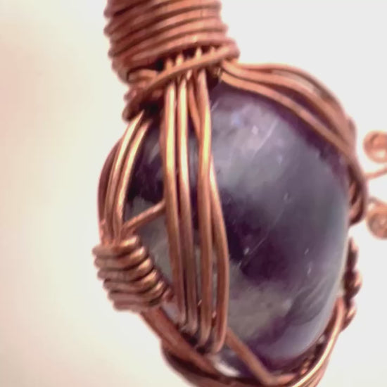 This copper chain necklace features wire wrapped rainbow fluorite crystal. The chain length is 24” and comes in the gift box shown.